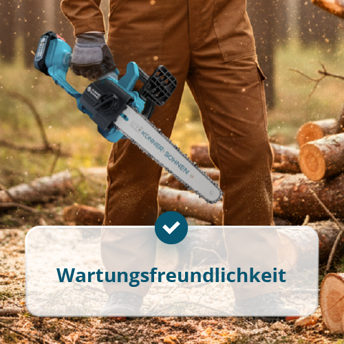 • Werkzeugloses Kettenspannungssystem – erlaubt schnelles Nachspannen oder Wechseln der Kette direkt am Arbeitsplatz, ohne Schraubenzieher oder Schlüssel.