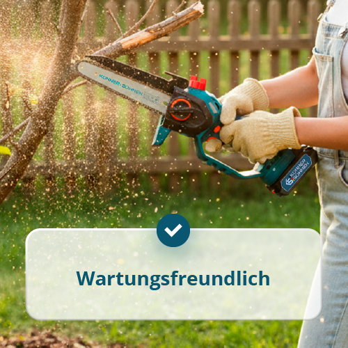 • Werkzeuglose Kettenspannung – ermöglicht schnelles Spannen oder Wechseln der Kette direkt vor Ort ohne Schraubenzieher oder Schlüssel.