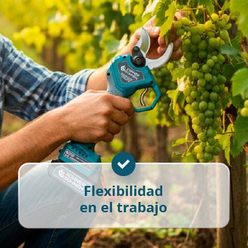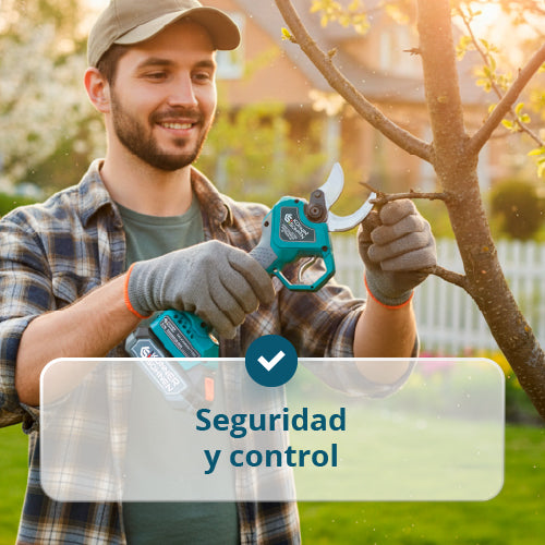 • Flexibilidad en el trabajo — dos anchos de apertura de cuchillas (20/40 mm) se adaptan a diferentes diámetros de ramas, ahorrando tiempo y batería.