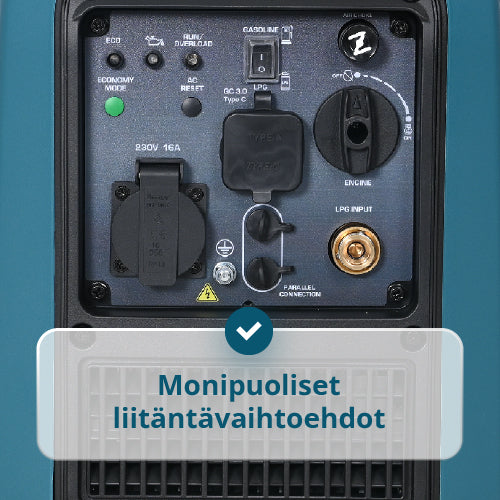 • Polttoaineen joustavuus: toimii bensiinillä tai nestekaasulla, mikä mahdollistaa säästöt.