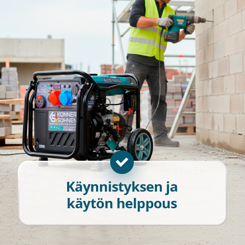 • Tehokas invertteriteknologia. Sisäänrakennettu elektroninen yksikkö mikroprosessoriohjauksella hallitsee generaattorin toimintaa ja tuottaa vakaan 230V 50Hz ulostulojänniteen puhtaalla siniaallolla, joka sopii herkille elektroniikkalaitteille.