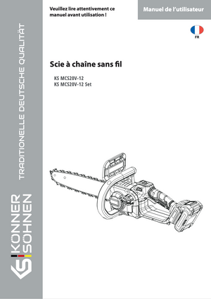 | Composants* | Mini-scie, Emballage, Manuel d’instructions, 2× Guide 12″ (30 cm), 2× Chaîne, Chargeur de batterie 20V KS C45A, Batterie lithium 20V 4,0 Ah |