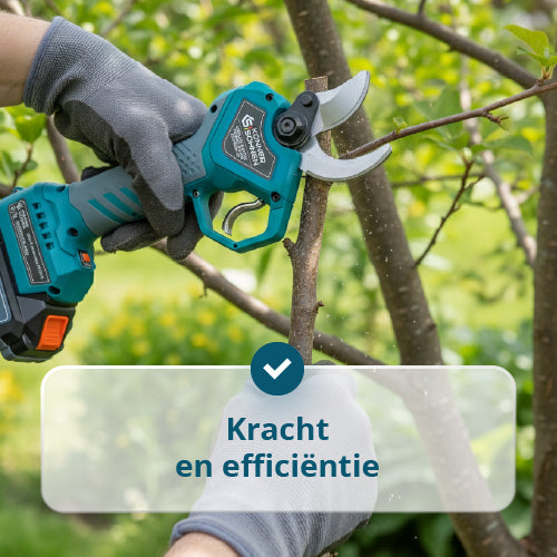 • Werkflexibiliteit — twee mesopeningen (20/40 mm) maken aanpassing mogelijk voor verschillende takdiameters, wat tijd en batterij bespaart.