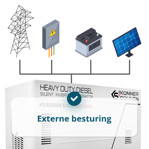 • Externe bediening – maakt de aansluiting mogelijk van externe bedieningsapparaten voor het starten/stoppen van de generator en integratie met automatische systemen die werken via potentiaalvrije contacten (droge contacten): zonne-omvormers, UPS-systemen en andere.