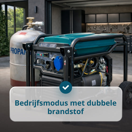 • Dubbele brandstofmogelijkheid (benzine en gas) biedt maximale flexibiliteit, zodat u de meest betaalbare of kosteneffectieve brandstof kunt kiezen, de operationele kosten kunt verlagen en de stroomvoorziening kunt handhaven, zelfs als één brandstoftype beperkt is.