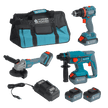 • Multifunctional cordless 3-in-1 set in a convenient bag – three tools in one kit: drill, angle grinder, and rotary hammer with 2 batteries and a fast charger in a convenient bag for various household tasks.