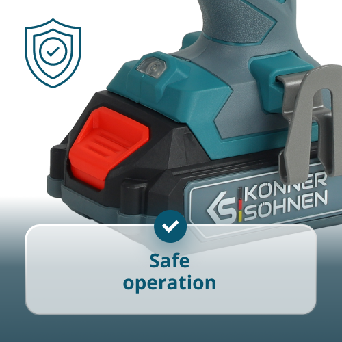 • Safe operation – the protection system includes overheating, overload, and over-discharge protection. Additionally, the angle grinder features a dual-sided anti-rotation protective guard and a tool-free gearbox lock system for user safety during operation.