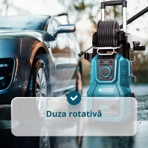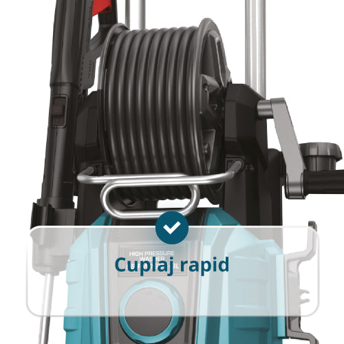 • Hose reel with guide frame – simplifies storage and prevents kinks, prolonging hose life.