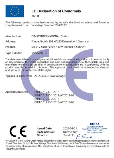 Godine 2016, proizvodi Könner & Söhnen® su prepoznati kao „PROIZVOD GODINE“ na osnovu faktora vrednosti za novac. Brend „Könner & Söhnen®“ je zauzeo svoju nišu u srednjem cenovnom segmentu, nudeći kupcu visokokvalitetnu robu sa svim evropskim sertifikatima po pristupačnoj ceni.