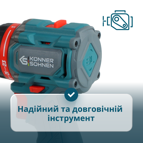 • Надійний та довговічній інструмент - дриль має безщітковий двигун, який забезпечує тривалий ресурс, стабільну потужність і менше нагрівання під час роботи, а посилений корпус редуктора з металевими деталями захищає внутрішні механізми від перевантажень.