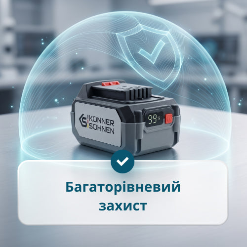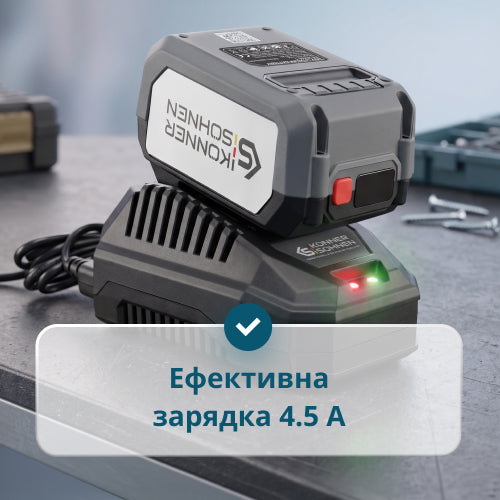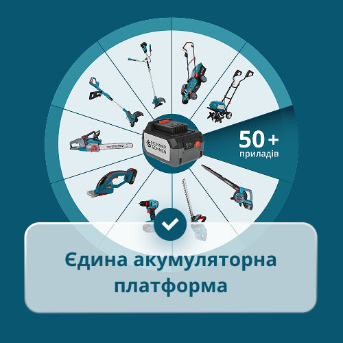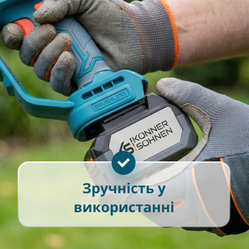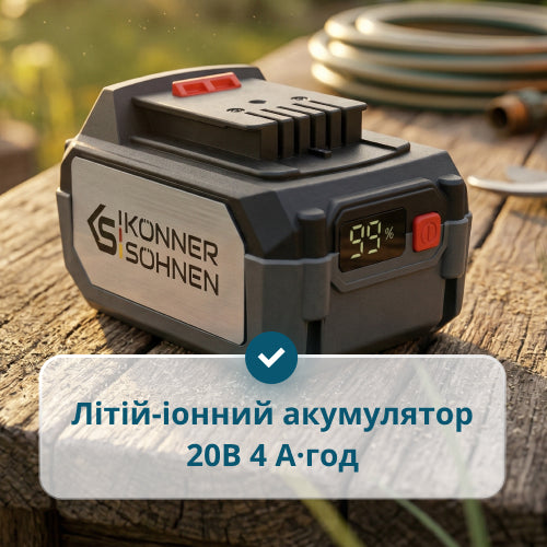 • Максимальна вигода покупки набором — купуючи повний комплект для догляду за газоном: газонокосарка, тример і зарядний пристрій, ви отримуєте акумулятор 4А·год K&S серії 20В у подарунок.